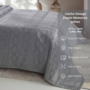Descubra o prazer de vestir sua cama com a elegância e qualidade da coleção Vintage Classic da Jolitex. Com a tecnologia Chenille e uma paleta de cores sofisticada em bege, branco, cinza, marrom, verde e azul, cada peça traz um toque refinado para a sua decoração. Desenvolvida para ser prática e duradoura, não amassa, não encolhe e mantém sua beleza impecável, mesmo após muitas lavagens.