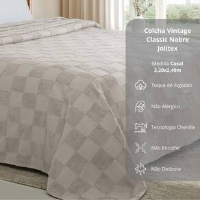 Descubra o prazer de vestir sua cama com a elegância e qualidade da coleção Vintage Classic da Jolitex. Com a tecnologia Chenille e uma paleta de cores sofisticada em bege, branco, cinza, marrom, verde e azul, cada peça traz um toque refinado para a sua decoração. Desenvolvida para ser prática e duradoura, não amassa, não encolhe e mantém sua beleza impecável, mesmo após muitas lavagens.