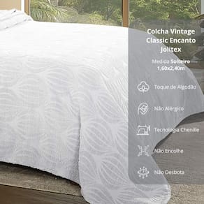 Descubra o prazer de vestir sua cama com a elegância e qualidade da coleção Vintage Classic da Jolitex. Com a tecnologia Chenille e uma paleta de cores sofisticada em bege, branco, cinza, marrom, verde e azul, cada peça traz um toque refinado para a sua decoração. Desenvolvida para ser prática e duradoura, não amassa, não encolhe e mantém sua beleza impecável, mesmo após muitas lavagens.