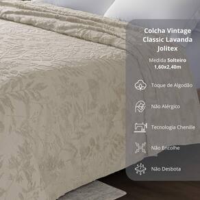 Descubra o prazer de vestir sua cama com a elegância e qualidade da coleção Vintage Classic da Jolitex. Com a tecnologia Chenille e uma paleta de cores sofisticada em bege, branco, cinza, marrom, verde e azul, cada peça traz um toque refinado para a sua decoração. Desenvolvida para ser prática e duradoura, não amassa, não encolhe e mantém sua beleza impecável, mesmo após muitas lavagens.