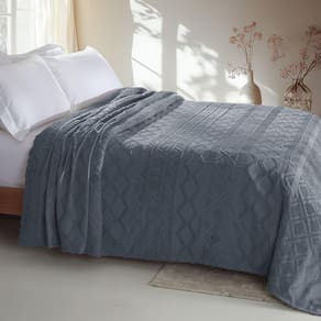 Colcha Chenille Jolitex Solteiro Memories Toque Algodão Azul