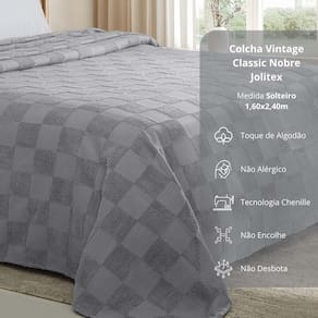 Descubra o prazer de vestir sua cama com a elegância e qualidade da coleção Vintage Classic da Jolitex. Com a tecnologia Chenille e uma paleta de cores sofisticada em bege, branco, cinza, marrom, verde e azul, cada peça traz um toque refinado para a sua decoração. Desenvolvida para ser prática e duradoura, não amassa, não encolhe e mantém sua beleza impecável, mesmo após muitas lavagens.