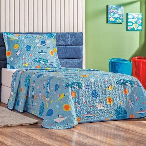 Confeccionado em tecido microfibra 100% poliéster é feito com matelado a base de calor que cria padrões em relevo que contrastam perfeitamente com a frente e o verso do produto. Com toque macio, a Colcha Bouti é perfeita para qualquer época do ano.