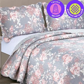Ficha técnica Material: Microfibra Composição: 100% Poliéster Tipo do bordado: Matelassê ultrassônico Dimensões da colcha: 220 x 240 cm (L x C) Dimensões do porta travesseiro: 50 x 70 cm (L x C)