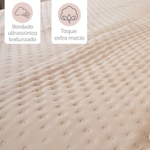 O kit colcha é ideal para aqueles que buscam conforto e beleza na hora de dormir. Confeccionado com um tecido de microfibra extra soft em micro percal, proporciona um toque macio e aconchegante. Possui uma moderna técnica de bordado em matelassê ultrassônico no formato de poá, um processo de bordado feito por calor e com enchimento leve de manta de microfibra para maior maciez.