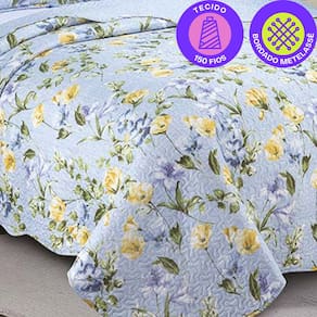 Ficha técnica Material: Microfibra Composição: 100% Poliéster Tipo do bordado: Matelassê ultrassônico Dimensões da colcha: 240 x 260 cm (L x C) Dimensões do porta travesseiro: 50 x 70 cm (L x C)