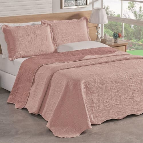 Colcha king bella dupla face 03 peças - rosê Kit cobre leito colcha bella matelada estampa vibrante renove o visual do seu quarto com a elegância e o charme da colcha bella matelada cores vibrantes