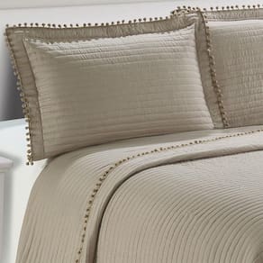 A colcha Pompom traz sua costura ultrasônica e pompom nas barras. Possuem um toque macio, são duráveis e fáceis de cuidar.