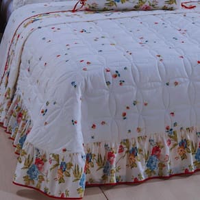 Percal 180 fios, com um babado em composê com acabamento em viés.