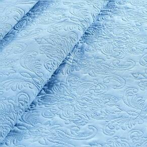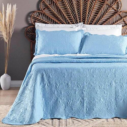 Colcha Queen Angele Dupla Face 200 Fios Bordado 3 Peças - Azul Astral