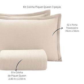 Colcha Queen Piquet Dohler 03 Peças Lisa 2,40X2,50M Bege
