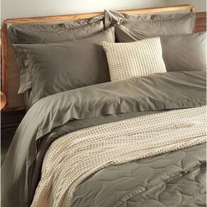 Colcha Solteiro 200 Fios Algodão Tom Funghi Karsten Colcha Solteiro com 1 Porta-travesseiro 200 Fios Tom Funghi O Jogo de Colcha Solteiro Tom Karsten, na sofisticada cor Funghi, é a escolha ideal para quem deseja transformar o quarto em um espaço de elegância e conforto. Confeccionado 100% em algodão, oferece um toque macio e acolhedor. A colcha dupla face com cantos quadrados proporciona versatilidade, permitindo mudar a decoração do quarto com facilidade. Os porta-travesseiros, com três abas de 5 cm, adicionam um acabamento refinado e elegante ao conjunto. Com sua alta qualidade e design cuidadosamente elaborado, este jogo de colcha traz um toque de classe e bem-estar, tornando o ambiente de descanso ainda mais agradável e estiloso.