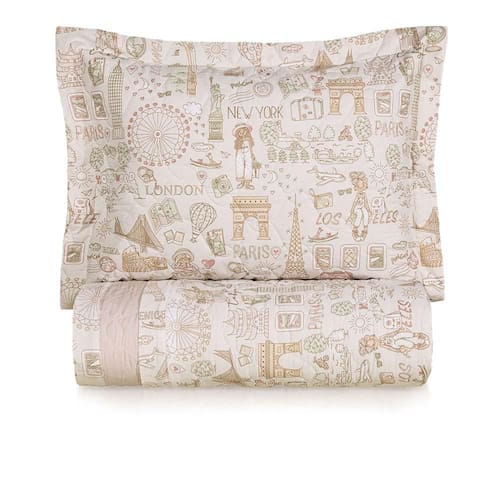 Confeccionada em 200 fios percal, 100% algodão e enchimento Thermobond 100% poliéster com gramatura de 120g/m de toque macio, confortável com excelente qualidade transferindo muita maciez e um conforto único para o seu momento de descanso. Antipilling; Hipoalergênico; Percal Soft e Thermobond; Fio Penteado; Altamente Respirável; Tecido mais encorpado; Amassa menos; Sensação de cama de hotel. A colcha Viajante é dupla face e apresenta estampa que remete a viagens pelo mundo, criando um ambiente divertido e descolado. Seu verso é liso, adicionando um toque de charme ao quarto. Com cantos quadrados e 1 porta-travesseiro com 3 abas de 5cm, esta colcha é perfeita para dar um toque delicado ao ambiente. Proporcione noites de sono para sua princesa. Perfeita para trazer o toque macio e beleza para o quarto! Foto meramente ilustrativa.