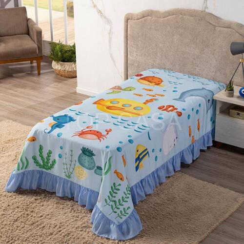 Colcha Solteiro Avulsa Cobre Leito Infantil Fundo Do Mar - Colcha Solteiro Infantil Estampada