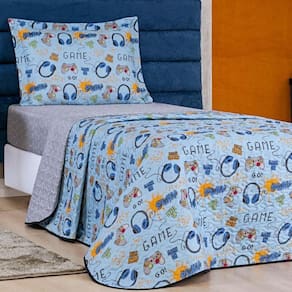 Opção perfeita para quem gosta de mudar o visual do quarto, as colchas são práticas e cheias de personalidade. O Kit Colcha Infantil Solteiro 2 Peças da Coleção Fantasy é composto por uma colcha e um porta travesseiro com estampas temáticas e divertidas que vão complementar a decoração do quarto do seu pequeno.