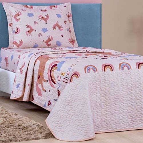 Colcha Solteiro Infantil 2 Peças Unicórnio - Única