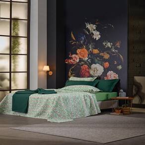 Com a estampa Hibiscus que possui as cores verde e bege.