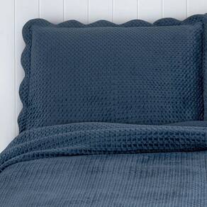 Colcha Velvet Veludo Queen Size Porta Travesseiros Marinho 3 Peças