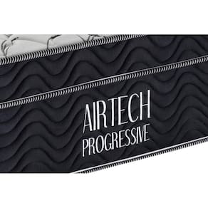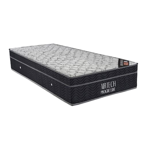 Colchão Airtech Progressive Solteiro (88x188x29) - Estrutura em molas Nanolastic, EPS, D26 Pró - Airtech SOBRE O PRODUTONovo Colchão Airtech Progressive possui em sua estrura o avançado molejo Nanolastic que tem a menor molécula de carbono do mercado, proporcionando um perfeito suporte para a coluna e conforto para qualquer biótipo, possui Ortopillow e em sua camada de conforto espuma D26 Pró Aditivada de Alta Performance, bordado em matelassê e placa EPS. Seu tampo é em malha de alta qualidade e lateral em Camurça, apresentando um toque refinado ao colchão. Possui a tecnologia No Turn, que dispensa a necessidade de virar o colchão. O Airtech Progressive recebe tratamento antialérgico e antiácaro, ajudando a reduzir os problemas respiratórios. Um excelente colchão para suas noites.CARACTERÍSTICASEstrutura composta pelo avançado molejo Nanolastic, placa EPS, Ortopillow, tampo em malha, bordado em Matelassê, manta de espuma D26 Pró, faixa lateral em Camurça, No Turn (não precisa virar), tratamento antialérgico e antiácaro.