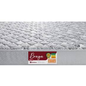 O Colchão Braga é composto por Espuma Flexível 100% Poliuretano Densidade 33kg/m, contendo no lado superior e inferior tecido 100% Poliéster - Gramatura 72g/m e Revestimento Lateral 54,39% Poliéster e 45,61% Polipropileno com gramatura de 151,54g/m.