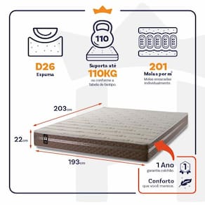 Garantia: 1 ano de garantia nas molas, 1 ano de garantia nas espumas e 3 meses no revestimento.