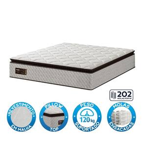 Características: Espuma de alta qualidade Estrutura que favorece a circulação de ar, ajudando a manter o colchão mais fresco e higiênico Molas ensacadas individualmente -média de 202 molas/m²- Peso suportado 120kg por pessoa Pillow Top para maior conforto Revestimento em malha Selo Inmetro 007069/2024 Sistema que favorece a ventilação do colchão