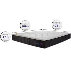 FICHA TÉCNICA DO PRODUTO Tamanho CASAL 138cm x 188cm SOBRE O COLCHÃO Altura 28 cm Espuma Estrutural D26+Eps Molas Ensacadas (molas Ensacadas individualmente) Revestimento do Tampo em Malha importada Revestimento da Faixa lateral em Suede Revestimento do Fundo com Forro Antiderrapante