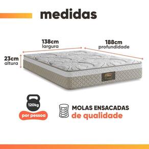 Importante sobre a : A é realizada até a portaria ou porta de entrada do indicado, desde que o acesso seja permitido. Para locais com portaria, a será feita no piso térreo. Não realizamos montagem, desmontagem, por escadas ou içamento. É responsabilidade do cliente verificar se as dimensões do produto são compatíveis com portas, elevadores e corredores. Evite imprevistos: confira todos os detalhes antes de concluir sua compra. MEDIDAS:: A = 23 cm L = 138 cm P = 188 cm | PESO SUPORTADO:: 120 kg por pessoa | PESO:: 17,47 kg | MODELO:: Colchão Casal Cristal Molas Ensacadas 138x188x23cm | MARCA:: Gazin | REVESTIMENTO SUPERIOR E LATERAL:: Tecido poliéster 100% sintético, oferecendo excelente custo-benefício, fácil higienização e não acumula poeira nem materiais orgânicos. Conta ainda com Euro IN, que intensifica a sensação de conforto. | REVESTIMENTO INTERNO:: Estrutura de molas ensacadas de qualidade, que suportam até 120kg por pessoa, garantindo conforto e estabilidade ao dormir. | ESPUMA:: Camada de espuma D28 dentro dos padrões ABNT, de alta qualidade, que proporciona conforto na medida certa | POSSUI EPS:: Sim | ITENS INCLUSOS:: 1 Colchão Casal (138 cm) | INSTRUÇÕES E CUIDADOS:: Utilizar em seco e arejado, não dobrar, fazer giro quinzenalmente no sentido pés/cabeceira | GARANTIA DO COLCHÃO:: 12 meses pelo fabricante | AVISO:: Importante sobre a : A é realizada até a portaria ou porta de entrada do indicado, desde que o acesso seja permitido. Para locais com portaria, a será feita no piso térreo. | Altura: 23 cm | Comprimento: 188 cm | É colchão na caixa: não | Largura: 138 cm | Tamanho do colchão: Casal | Quantidade de caixas de embalagem: 1 | Altura da embalagem: 23 cm | Comprimento da embalagem: 188 cm | Largura da embalagem: 138 cm | Peso da embalagem: 15000 g | Cor: Bege / Branco
