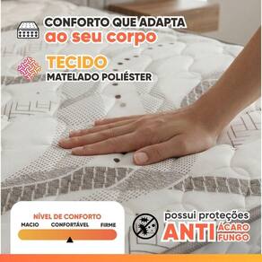 REVESTIMENTO INTERNO: Estrutura de molas ensacadas de qualidade, que suportam até 120kg por pessoa, garantindo conforto e estabilidade ao dormir.