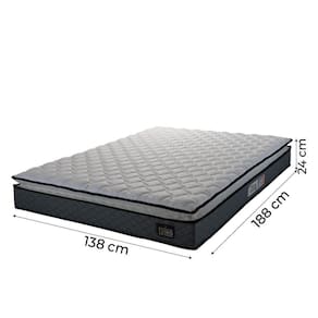 ; MEDIDAS: [ A ] = 24 cm [ L ] = 138 cm [ P ] = 188 cm | MODELO: Colchão Casal Strong 138cm | MARCA: Hellen | COR: Cinza/Branco | REVESTIMENTO TECIDO SUPERIOR: Tecido 100% Granitê Branco + TNT | REVESTIMENTO TECIDO LATERAL:: Tecido 100% Poliéster Cinza | ESPUMA: D45 | PILLOW/EURO: Pillow Top | PESO: 12,97kg | PESO SUPORTADO: 150kg por pessoa | ITENS INCLUSOS: 1 Colchão 1,38m | GARANTIA: 12 meses | OBSERVAÇÃO: Montagem não inclusa. Entregamos até a porta de entrada da casa do cliente ou até a portaria do condomínio. | REVESTIMENTO INTERIOR: Espuma D45 aliada com EPS que faz com que o colchão suporte até 150kg por pessoa | TIPO DO COLCHÃO: Espuma D45 | TONALIDADE:: Cinza | TAMANHO DO COLCHÃO:: [ A ] = 24 cm [ L ] = 138 cm [ P ] = 188 cm | ESTRUTURA DO COLCHÃO:: Revestimento Tecido Jacquard Bege Itália, 60% Poliéster, 40% Algodão, Espuma D20 | CLASSIFICAÇÃO DO COLCHÃO: Casal Cor: Cinza