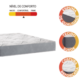 REVESTIMENTO INTERIOR: Espuma D28 de qualidade, que faz com que o colchão suporte até 100kg por pessoa, garantindo durabilidade e conforto