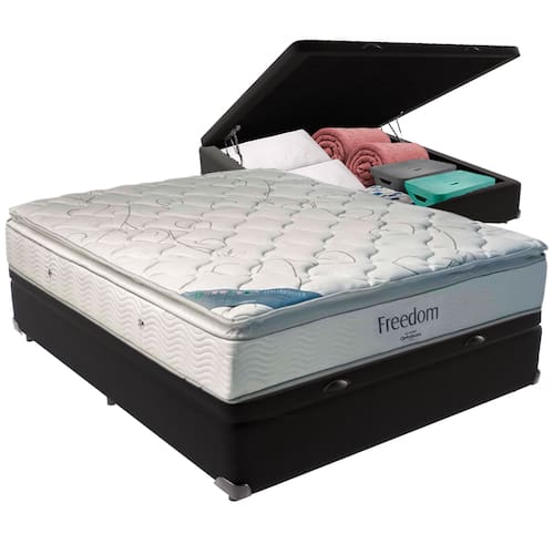 Bem-vindo(a) ao nosso catálogo! Apresentamos a você uma descrição completa sobre esse produto:O colchão Freedom possui Molas Ensacadas e conta com uma camada de espuma viscoelástica D33, que se adapta ao contorno do corpo, proporcionando uma sensação de conforto e aconchego, além de auxiliar na circulação sanguínea.Colchão: Modelo: Freedom;Marca: Ortobom;Tamanho: Casal;Dimensões: 138x188x18cm; (largura x comprimento x altura)Conforto: Molas Ensacadas, Espuma Viscoelástica D33, Pillow Euro;Proteções: Antiácaro, antialérgico, antifungo, antimofo;Possui: Sistema No Turn;Peso máximo recomendado: até 150Kg; (por pessoa)Garantia: 03 meses; O Pillow Euro, por sua vez, traz um design moderno e Elegant, com uma camada extra de espuma que forma uma espécie de travesseiro na parte superior do colchão. Já o sistema No Turn do colchão Freedom significa que ele não precisa ser virado regularmente, o que facilita bastante a sua manutenção e conservação ao longo do tempo.Suporte e estrutura: Com suporte para até 150kg, ele é uma excelente opção para casais ou pessoas que buscam um colchão mais resistente e durável. E com 32cm de altura, o colchão Freedom é bastante alto e oferece um visual imponente e confortável para o quarto.Qualidade Ortobom: O Freedom é produzido pela renomada marca Ortobom, conhecida por sua expertise em tecnologia do sono. Com anos de experiência no mercado, a Ortobom é reconhecida por oferecer produtos inovadores e de alta qualidade, que atendem às necessidades dos clientes mais exigentes.Base Box com Baú:Marca: KazaMix;Cor do Baú: Preto;Revestimento da Cama: Material Sintético;Material dos pés: Madeira;Estrutura: Madeira;Abertura: Pistão a gás;Peso máximo recomendado: até 150kg de cada lado;Altura do Baú: 32cm;Altura dos pés: 5cm;Altura total: 37cm;Garantia: 03 meses;Selo Ecologicamente Correto.Invista no seu sono e experimente o conforto e a qualidade!Atenção: Antes de finalizar sua compra, certifique-se de que as dimensões do produto sejam adequadas para serem transportadas pelos elevadores, portas, escadas e corredores de sua residência. Ressaltamos que não nos responsabilizamos pelo transporte do produto por meios específicos, como escadas, guinchos ou içamentos.