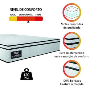 Você merece o melhor quando se trata do seu sono e bem-estar, e por isso o Colchão Maximus se torna a escolha perfeita para o seu quarto! Conta com molas ensacadas individualmente que trabalham em conjunto para garantir conforto e durabilidade, pois desta forma independente, o movimento de uma pessoa não interfere no conforto da outra. Confeccionado em malha matelassê e fibra siliconada que permite melhor ventilação, proporcionando ainda mais conforto, lateral em tecido suede de toque macio e ainda conta com uma camada de euro in, proporcionando maciez. Invista na qualidade do seu sono e experimente garantia total de descanso e qualidade de vida!