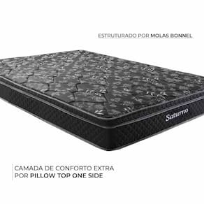 O acabamento do Colchão Casal Herval Saturno é dado pelo Pillow Top One Side, que é uma camada de conforto extra localizada na parte superior do colchão, acima do molejo.