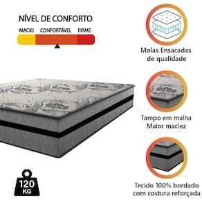 REVESTIMENTO INTERIOR: Molas Ensacadas aliada com espuma D60, permitindo que o colchão suporte até 120 kg por pessoa
