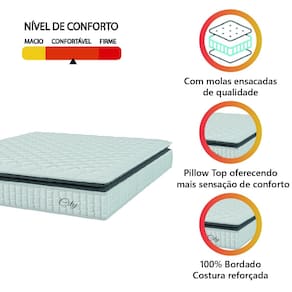 MODELO: Colchão Casal King Molas Ensacadas City Pillow Top 193x203x23cm Hellen