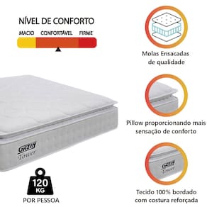 MODELO: Colchão Casal King Molas Ensacadas Com Pillow Tower New 193x203x35cm Suporta Até 120 Kg Por Pessoa