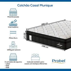 As espumas do Colchão Casal Munique foram desenvolvidas com a Tecnologia ProMax Probel, que passam por rigorosos testes de qualidade em laboratório e recebem tratamento antiácaro e antifungo.