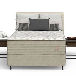 Conforto Acolhedor com Super Pillow e Tecido Premium: Apesar da firmeza estrutural, o generoso Super Pillow proporciona uma camada de acolhimento suave e envolvente. O tecido em Malha Branca de 280 g/m², com detalhes bege cuidadosamente integrados, oferece um toque agradável e uma estética elegante, digna de um ambiente de alto padrão. Essa combinação luxuosa convida a momentos de relaxamento profundo, não apenas durante o sono, mas em qualquer momento de prazer e bem-estar.