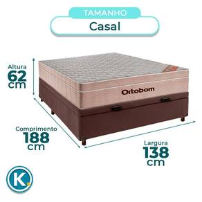 Colchão Casal Molas Ensacadas + Bau Marrom - Airtech Ortobom Conjunto Casal Colchão Airtech + Cama Box Bau Colchão Ortobom Casal com 25cm de altura, ideal para conforto no uso diário