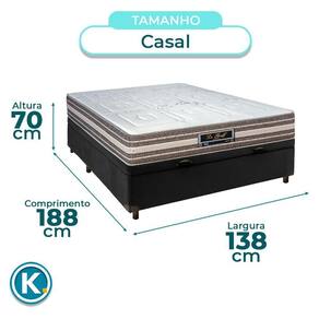 Suporte de até 120kg por pessoa, ideal para uso diário com firmeza equilibrada Base baú casal com 37cm de altura e amplo espaço interno para organização