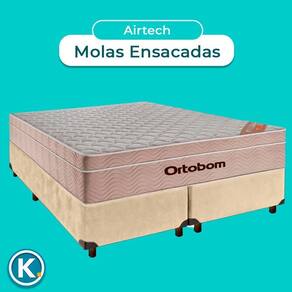 Colchão Casal Molas Ensacadas + Box Blindado - Airtech Ortobom Conjunto Casal Colchão Airtech + Cama Box Colchão Ortobom Casal com 25cm de altura, ideal para conforto no uso diário