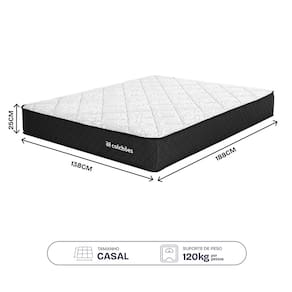Especificações Medidas: 25cm x 138cm x 188cm (Altura x Largura X Comprimento) Nível de conforto: Firme; Suporte de peso: Até 120 kg por pessoa; Molas ensacadas; Espuma de alta densidade; High Support Board: EPS Produto Hipoalergênico; Garantia: 01 ano; Marca: BF Colchões.