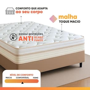 REVESTIMENTO INTERNO: Estrutura de molas ensacadas individualmente, que suportam até 130kg por pessoa, garantindo conforto e estabilidade ao dormir