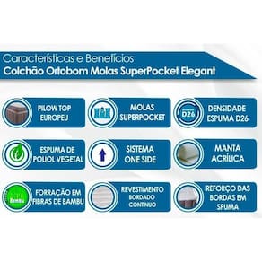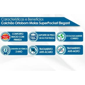 Colchão Casal Molas Ensacadas SuperPocket Elegant OrtoPillow (138x188x28) - Ortobom