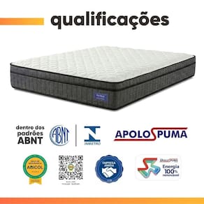 Importante sobre a : A é realizada até a portaria ou porta de entrada do indicado, desde que o acesso seja permitido. Para locais com portaria, a será feita no piso térreo. Não realizamos montagem, desmontagem, por escadas ou içamento. É responsabilidade do cliente verificar se as dimensões do produto são compatíveis com portas, elevadores e corredores. Evite imprevistos: confira todos os detalhes antes de concluir sua compra. MEDIDAS:: A = 25 cm L = 138 cm P = 188 cm | PESO SUPORTADO POR PESSOA:: 130 kg | PESO:: 23,21 kg | MODELO:: Colchão Casal Ortopédico D33 Euro Pillow Ultra 138x188x25cm Apolo | MARCA:: Apolo Espumas | REVESTIMENTO SUPERIOR E LATERAL:: Feito com malha bio de toque suave e agradável, que garante conforto imediato. Sua elasticidade se adapta ao corpo, oferecendo liberdade de movimento | REVESTIMENTO INTERNO:: Camada de espuma D33 dentro dos padrões ABNT, de alta qualidade, que proporciona conforto na medida certa | PILLOW:: Euro In, camada extra de conforto que proporciona maciez superior e uma sensação acolhedora a cada noite de sono | ORTOPÉDICO:: Sim, suporte firme e ajuda a manter a postura correta da coluna, proporcionando alívio para dores e tensões musculares. Ideal para quem busca conforto e durabilidade, base mais estável para o descanso | COLCHÃO CONTÉM:: ANTI MOFO: prolonga a vida útil do colchão, preservando a integridade e a qualidade do tecido / ANTI ALÉRGICO: proporciona noites de sono mais tranquilas, saudáveis e livres de irritações / ANTI ÁCARO: mantém o ambiente de descanso mais puro, higiênico e | OBSERVAÇÃO:: O colchão conta com uma base em EPS, um material resistente, leve e de alta durabilidade, que garante maior firmeza e prolonga a vida útil do colchão | 1 Colchão (138 cm): ITENS INCLUSOS: | INSTRUÇÕES E CUIDADOS:: Utilizar em seco e arejado, não dobrar, fazer giro quinzenalmente no sentido pés/cabeceira | GARANTIA:: 12 meses pelo fabricante | AVISO: Importante sobre a : A é realizada até a portaria ou porta de entrada do indicado, desde que o acesso seja permitido. Para locais com portaria, a será feita no piso térreo. Não realizamos montagem, desmontagem, p | Altura: 25 cm | Largura: 138 cm | Comprimento: 188 cm | É colchão na caixa: Não | Tamanho do colchão: Casal | Altura da embalagem: 25 cm | Comprimento da embalagem: 188 cm | Largura da embalagem: 138 cm | Peso da embalagem: 17550 g | Cor: Grafite