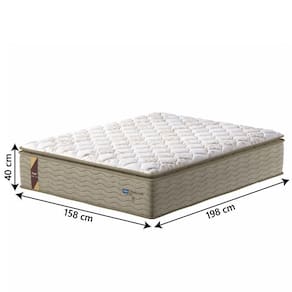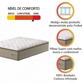 MEDIDAS:: [ A ] = 40 cm [ L ] = 158 cm [ P ] = 198 cm | PESO:: 32,54kg | PESO SUPORTADO:: 180kg por pessoa | MODELO:: PELMEX | MARCA:: Probel | COR:: Bege / Branco | REVESTIMENTO SUPERIOR:: Pillow top, tecido em malha branca com detalhes em bege que permite melhor ventilação, possui pillow super que é uma camada extra de conforto. | TECIDO LATERAL:: Jacquard bege. 100% sintético, por ser sintético não é propenso ao acúmulo de poeira e materiais orgânicos, além de ser de fácil higienização. | REVESTIMENTO INTERIOR:: Molejo estrutural em molas prolastic, que permitem que o colchão suporte até 180kg por pessoa, oferecendo conforto e estabilidade durante o sono. | REVESTIMENTO INFERIOR:: Tecido antiderrapante | ANTI ALÉRGICO / ÁCARO:: Sim | PILLOW SUPER:: Sim | TIPO DE MOLA:: Molas Prolastic | ESPUMA:: D45 e D65 garantindo conforto e resistência | POSSUI EPS:: Sim | ITENS INCLUSOS:: 1 Colchão de 1,58m | GARANTIA:: 12 Meses pelo fabricante | AVISO:: A Esplanada Móveis se responsabiliza pela entrega dos produtos adquiridos até a porta de entrada ou portaria do endereço indicado, se a portaria do condomínio permitir, as entregas são efetuadas no piso térreo e é de responsabilidade do cliente | ALTURA:: 40cm Cor: BEGE/BCO