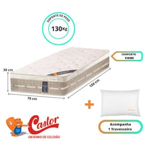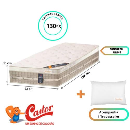 Colchão Castor Solteiro Molas Premium Tecnopedic System One Face 78x188x30cm + 1 Travesseiro Fibra