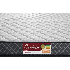 O Colchão Córdoba é composto por Espuma Flexível 100% Poliuretano Densidade 33kg/m, contendo no lado superior e inferior tecido 100% Poliéster - Gramatura 187g/m e Revestimento Lateral 58% Algodão e 42% Poliéster com gramatura de 235g/m.