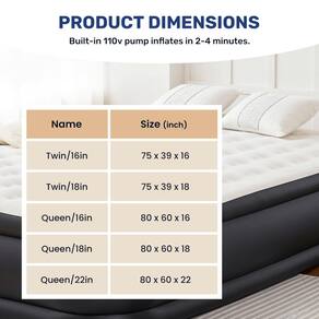 - Bomba de alta capacidade embutida: o colchão de ar é equipado com uma bomba de ar elétrica de alta potência de 110 V embutida de alta velocidade. A cama de ar pode ser inflada/esvaziada em minutos com o apertar de um botão em menos de 240 segundos para tamanho queen de 56 cm, perfeita para casa ou viagens
